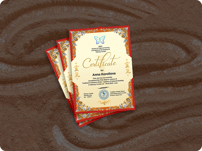Вы получаете Посвящение, а после успешного прохождения теоретической и практической части курса в течение 2 месяцев - именной сертификат, который высылается на электронную почту.